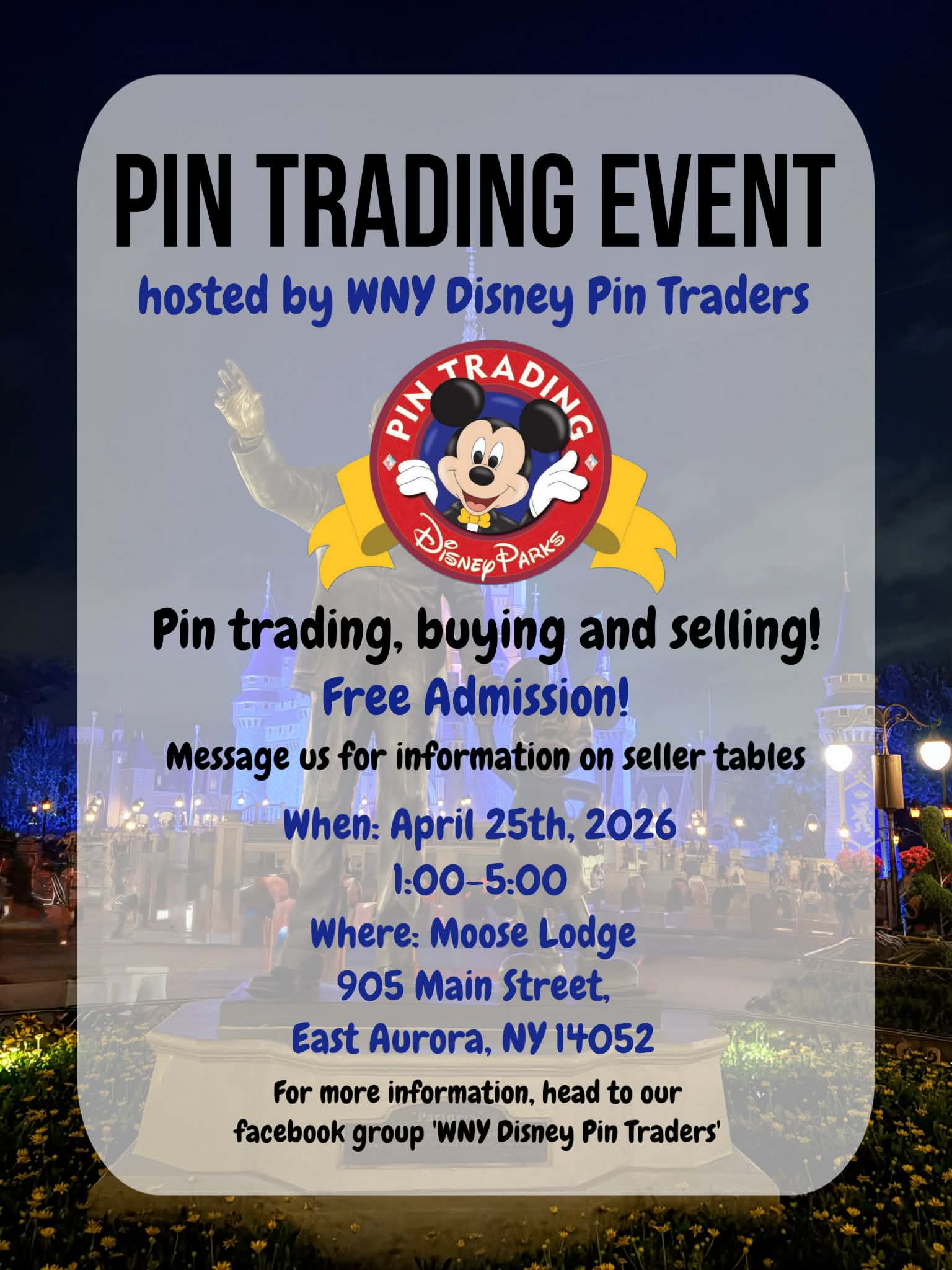 DISNEY PIN TRADING , BUYING AND SELLING EVENT HOSTED BY WNY DISNEY PIN TRADERS